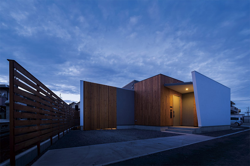 素材が光るコの字型の平屋